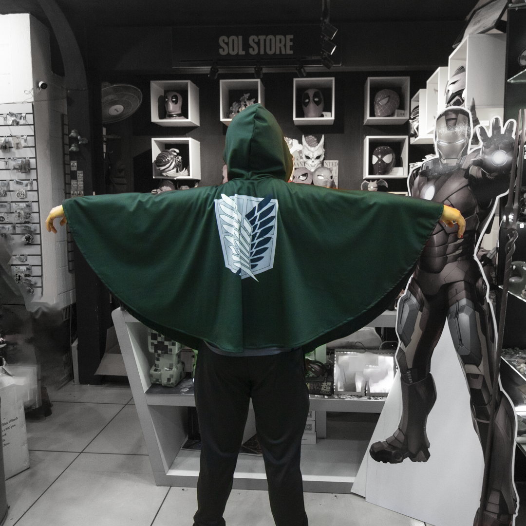 Capa inspirada en el Cuerpo de Exploración de Attack on Titan ⚔️🌍, con el icónico emblema de “Las Alas de la Libertad” que representa valentía y sacrificio. Perfecta para cosplay, sesiones de fotos o para lucir un look épico digno de un verdadero explorador del Muro 🛡️✨.