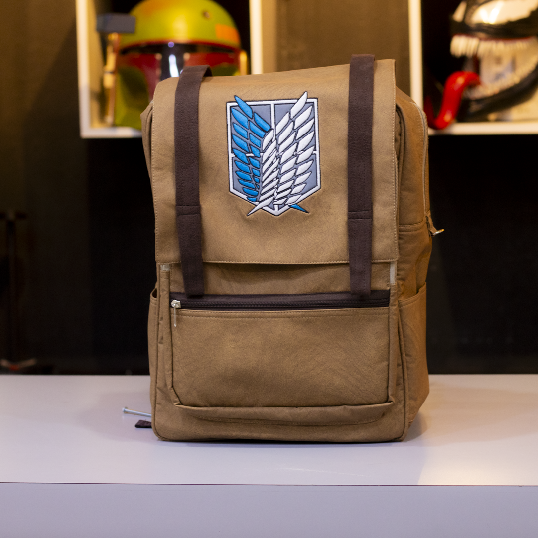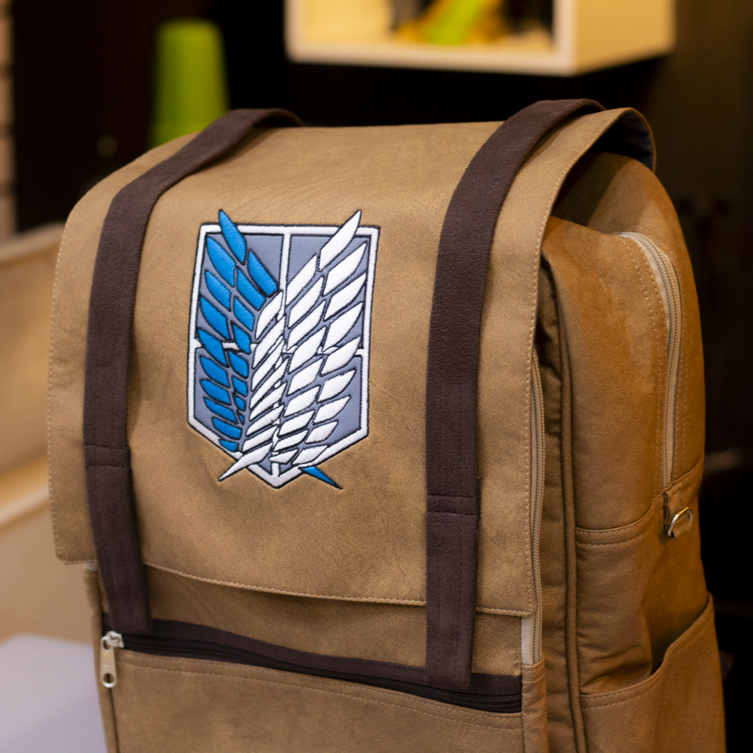Esta mochila inspirada en Attack on Titan lleva al frente el emblema del Cuerpo de Exploración: las icónicas Alas de la Libertad, símbolo de coraje y desafío ante lo imposible. Ideal para quienes cargan valor, sueños… y una que otra libreta.