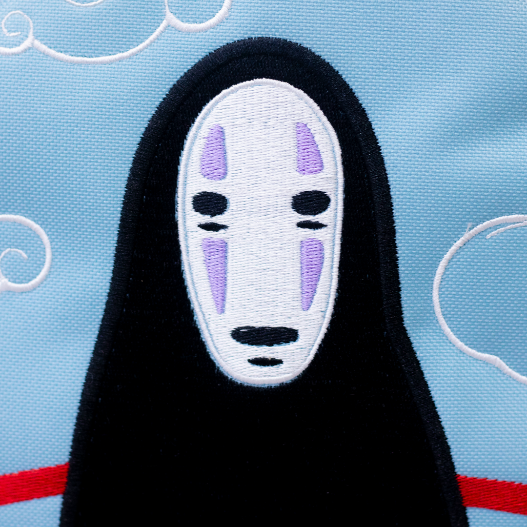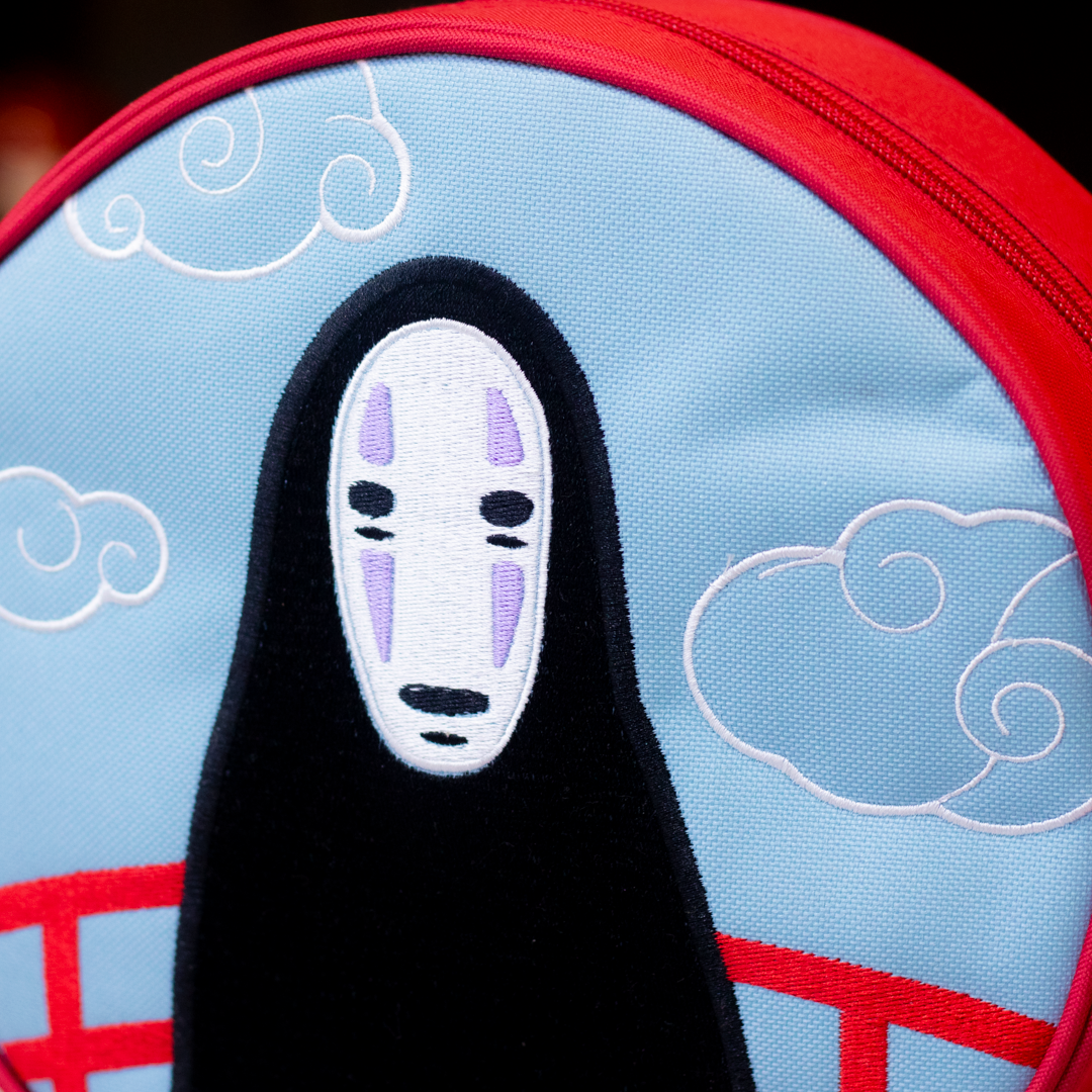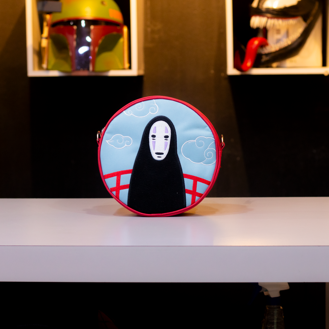 Esta bolsa redonda inspirada en el personaje Sin Cara captura la esencia del icónico espíritu silencioso del Studio Ghibli. Con correa ajustable y diseño minimalista, es perfecta para quienes aman lo enigmático y lo estéticamente oscuro.