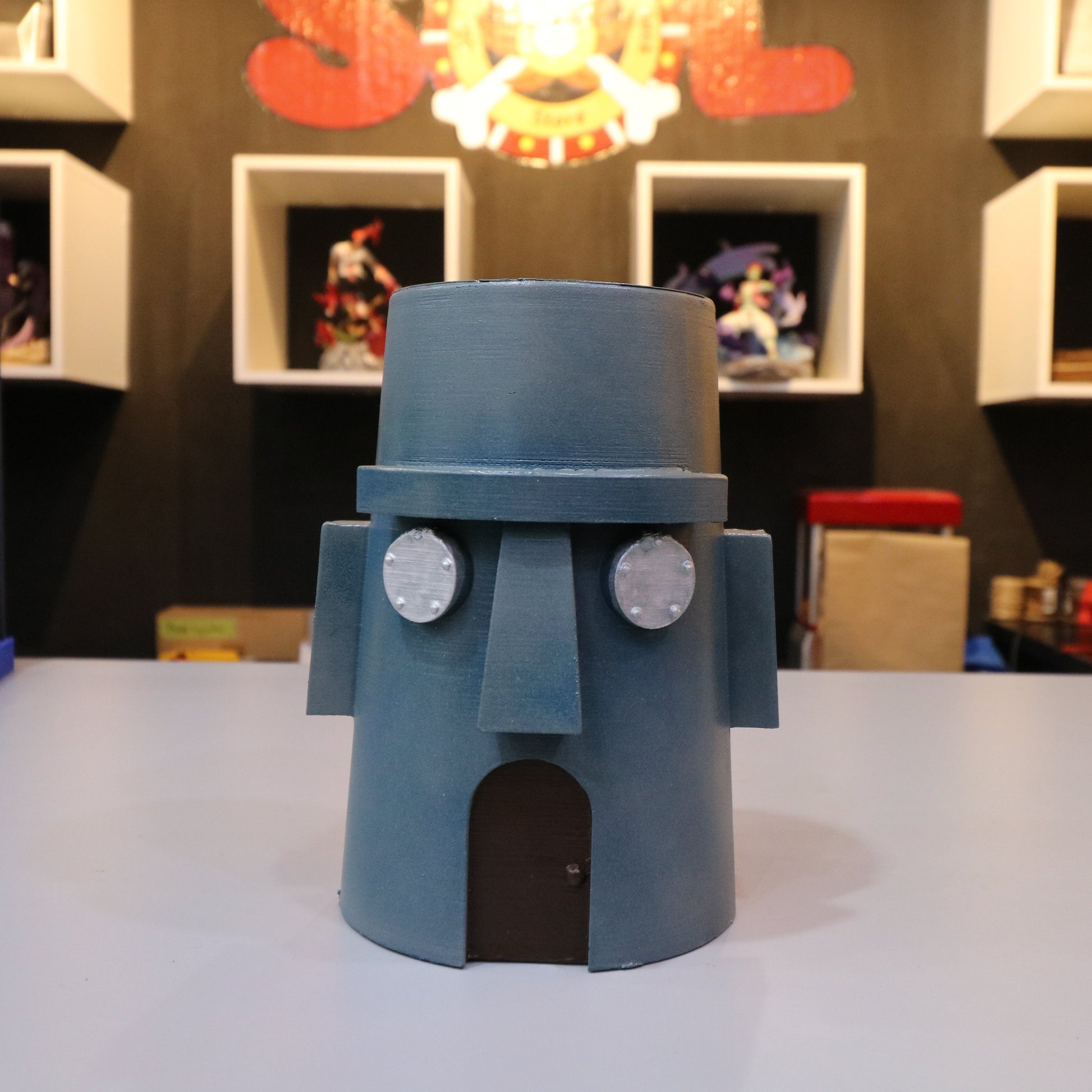 Nuestro amigo calamardo viene a presentarnos su lujosa casa llena de estilo para que guardemos nuestros nuestos efectivo para coprar algo con estilo y elegancia.