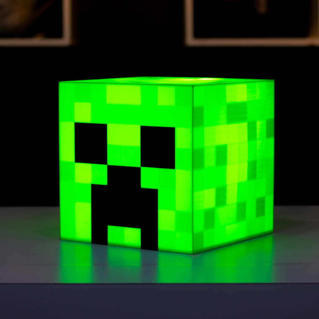 ¡Ssssss… boom! 😱 Esta lámpara con forma de cabeza de Creeper ilumina tu cuarto con el mismo estilo explosivo que conoces del mundo de Minecraft… solo que sin destruir tus construcciones. ⛏️💣