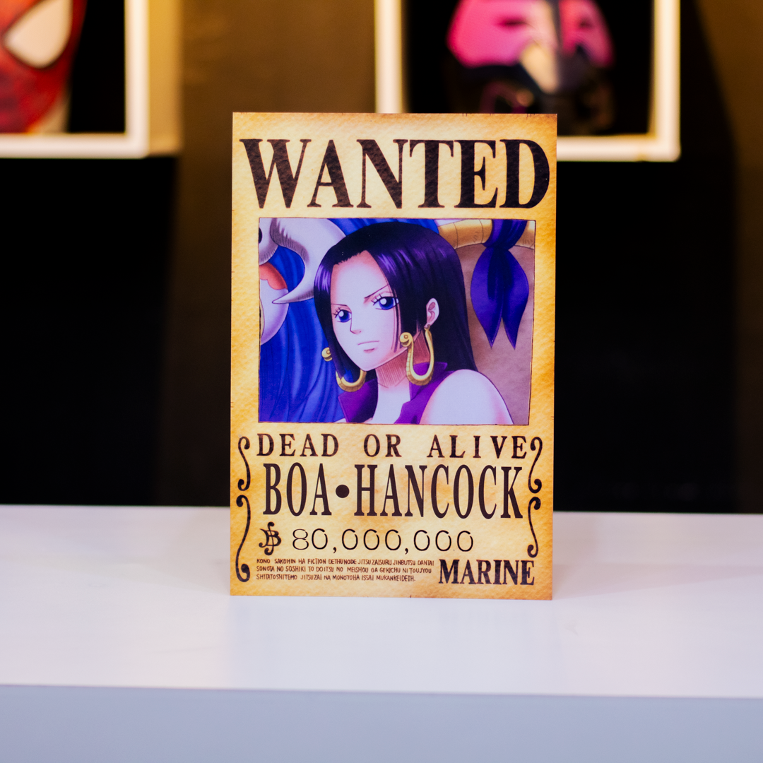 Este cuadro metálico estilo WANTED de 20x30 cm inmortaliza a Boa Hancock, la emperatriz pirata cuya belleza es tan letal como su poder.