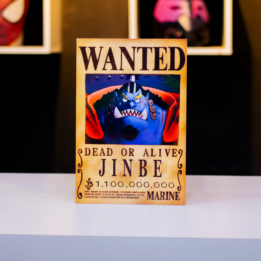Este cuadro metálico estilo WANTED de 20x30 cm captura al Caballero del Mar, el timonel de los Sombrero de Paja y uno de los piratas más respetados de los mares.