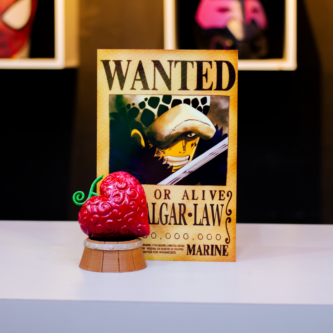 Este cuadro metálico estilo WANTED de 20x30 cm inmortaliza a Law junto a la Ope Ope no Mi, la fruta que lo convirtió en el cirujano más temido y letal de los mares.