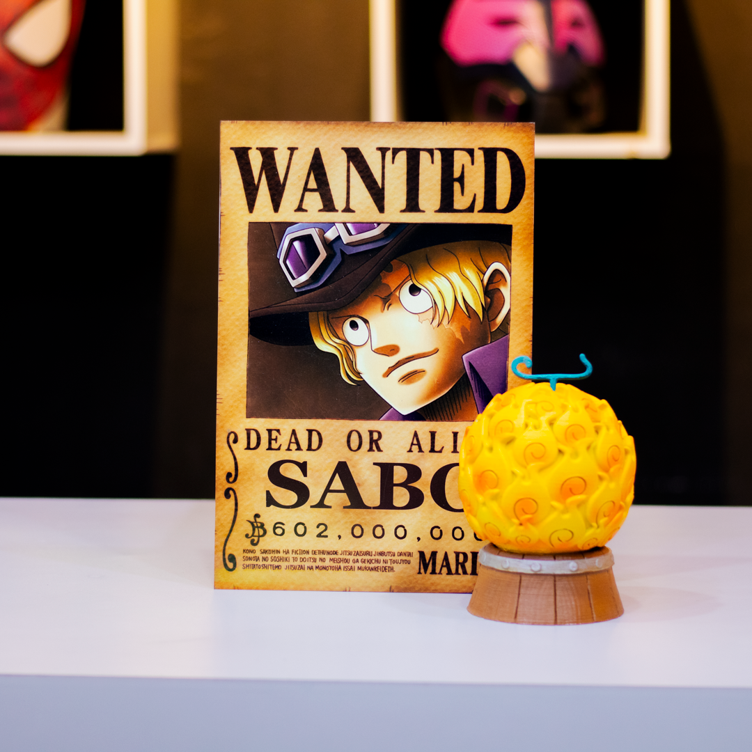 Este cuadro metálico estilo WANTED de 20x30 cm inmortaliza a Sabo junto a la Mera Mera no Mi, la fruta que heredó para mantener vivo el legado de su hermano.