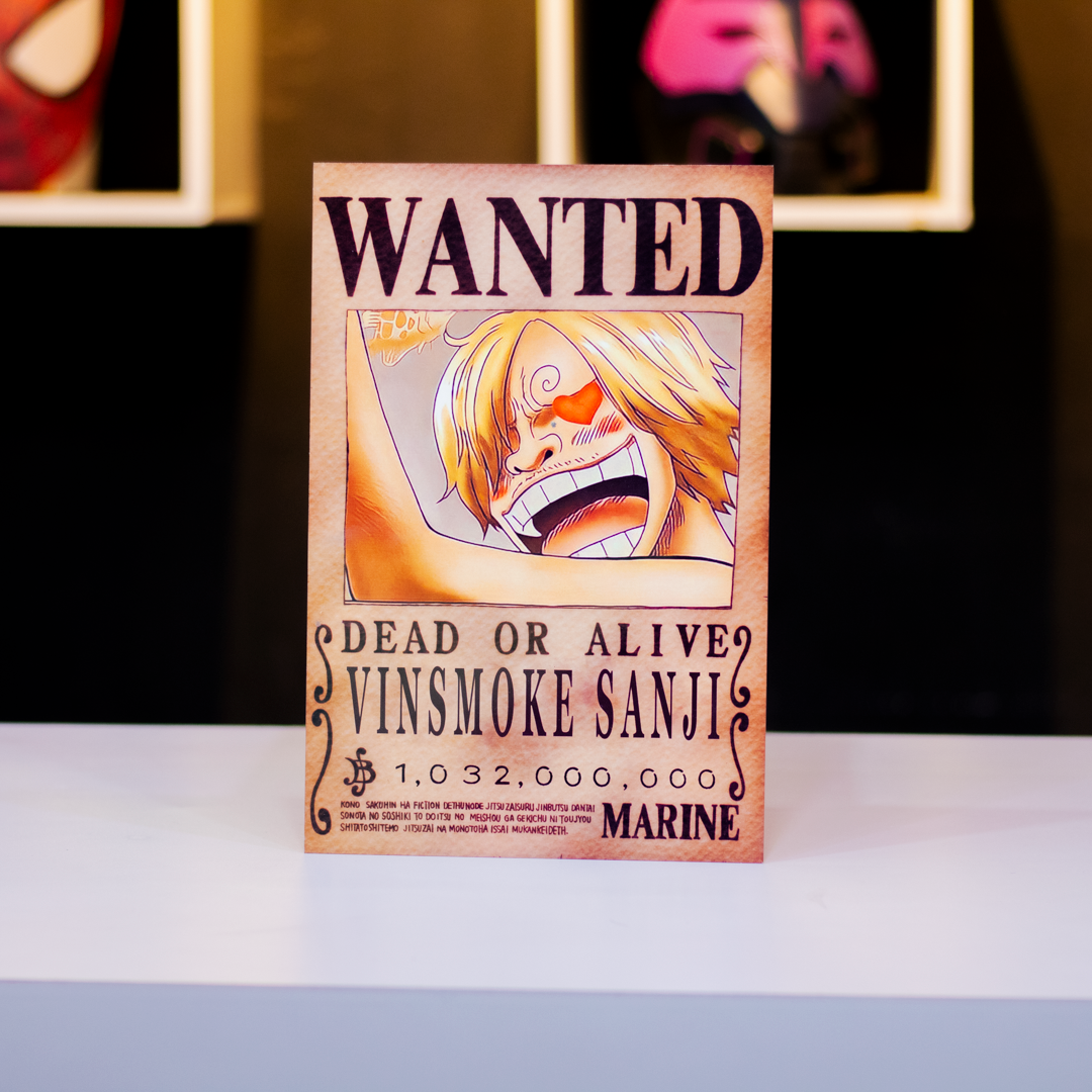 Este cuadro metálico estilo WANTED de 20x30 cm inmortaliza a Sanji, el chef más letal de los mares y el Sombrero de Paja con más estilo.