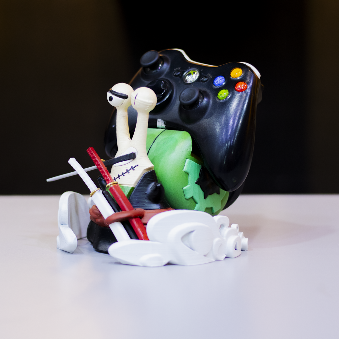 Este Den Den Mushi de Zoro - Porta Control es la solución definitiva para los verdaderos nakamas del gaming. Inspirado en el icónico caracol comunicador del espadachín más perdido de One Piece, este soporte mantiene tu control seguro y listo para la acción.