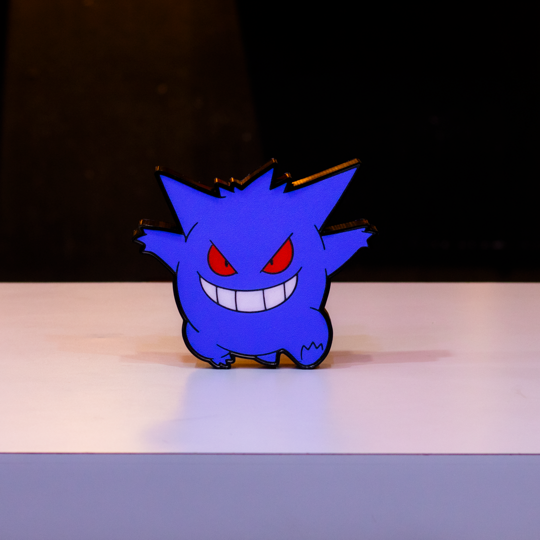 Misteriosa, brillante y con una sonrisa que no promete nada bueno. Esta lámpara de Gengar, impresa en 3D, es perfecta para iluminar tu setup, escritorio o rincón gamer con la energía traviesa del tipo Fantasma más querido de Kanto.