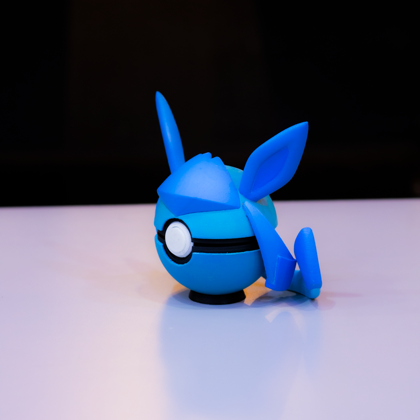 Impresa en 3D con detalles inspirados en la evolución tipo hielo de Eevee, esta Pokébola se abre y se cierra, lista para entrenadores que dominan el campo… y la estética. 🧊✨