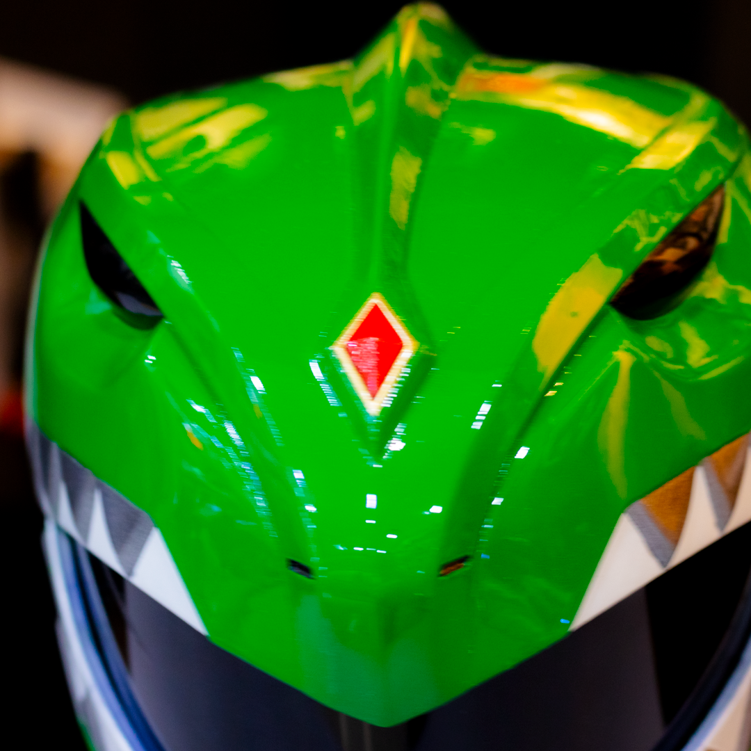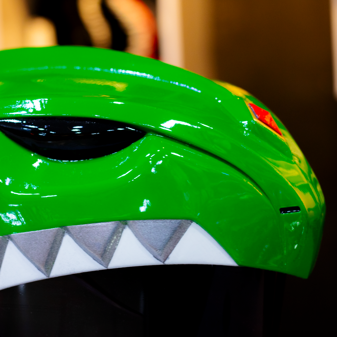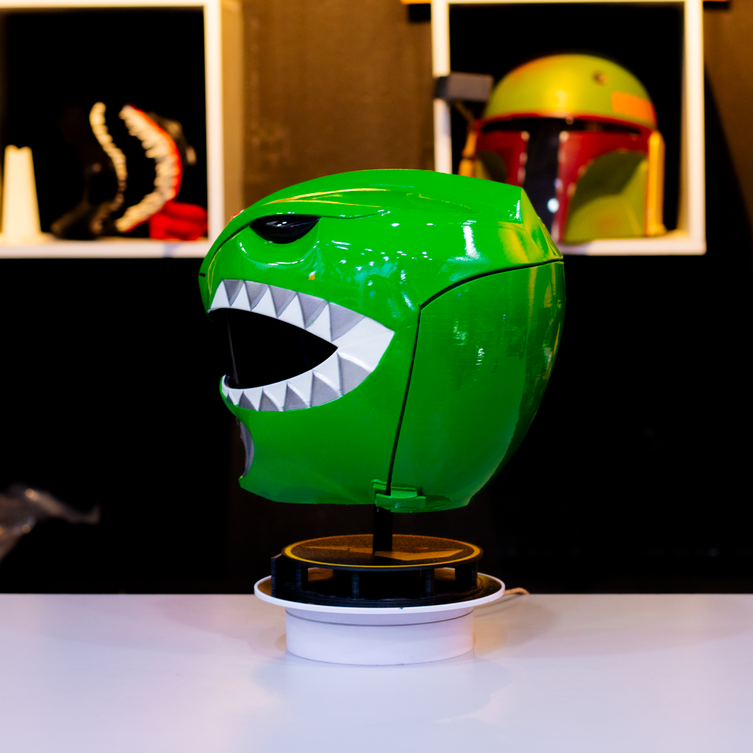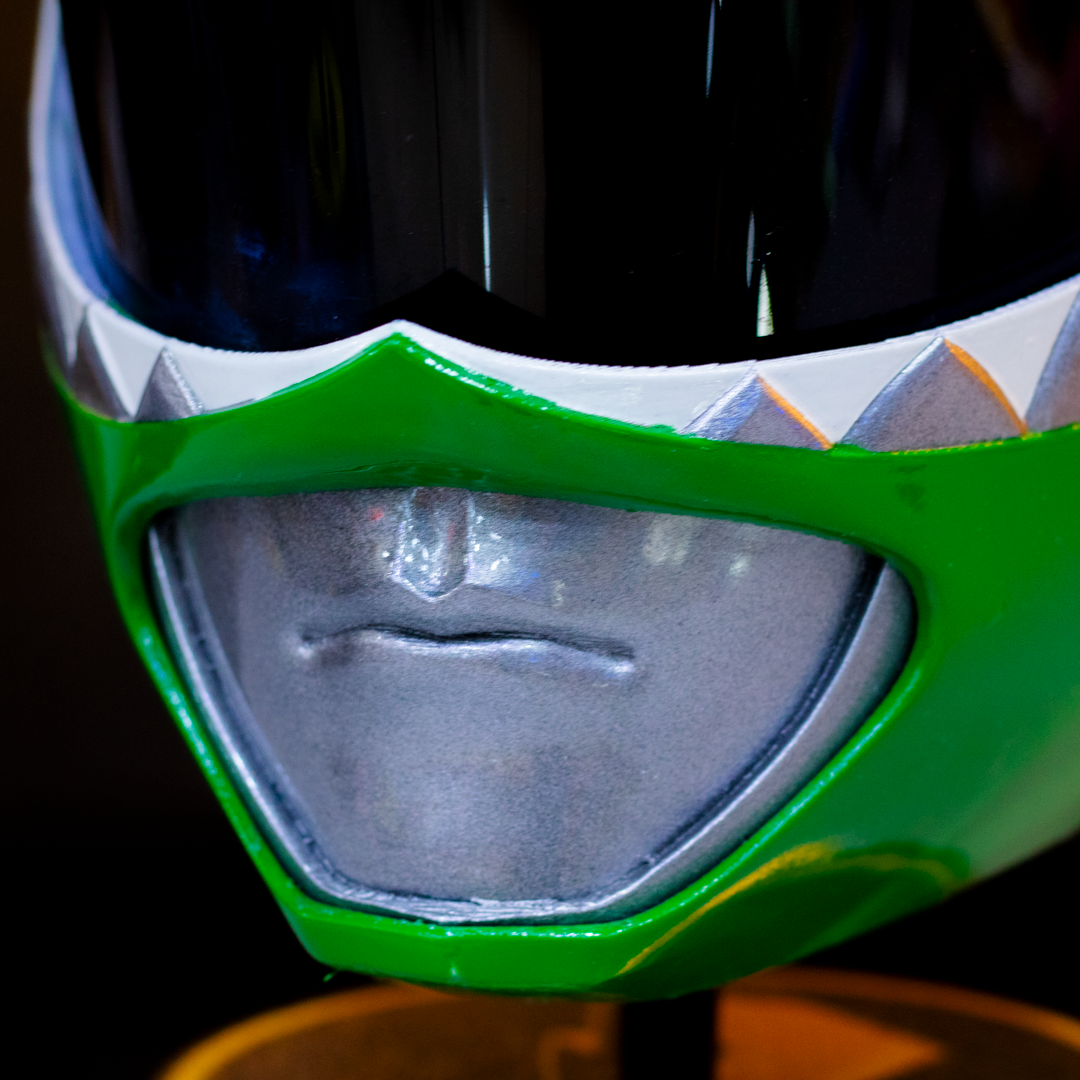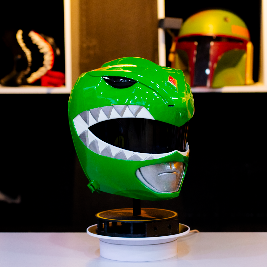 Este casco inspirado en el Green Ranger de Mighty Morphin Power Rangers recrea el diseño icónico del Dragón, símbolo de fuerza, misterio y uno de los personajes más queridos de la saga. Perfecto para cosplay, colección o exhibición.