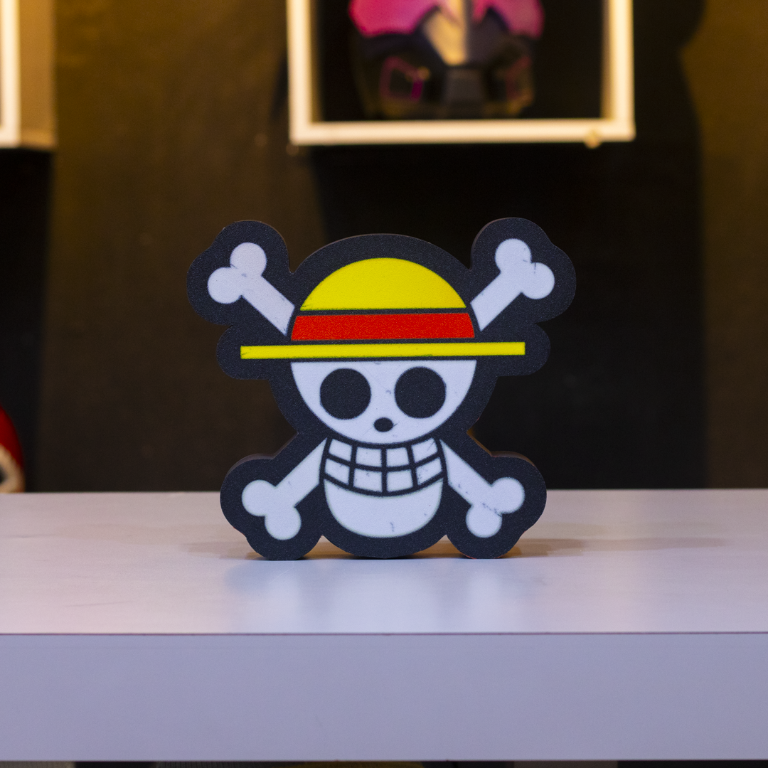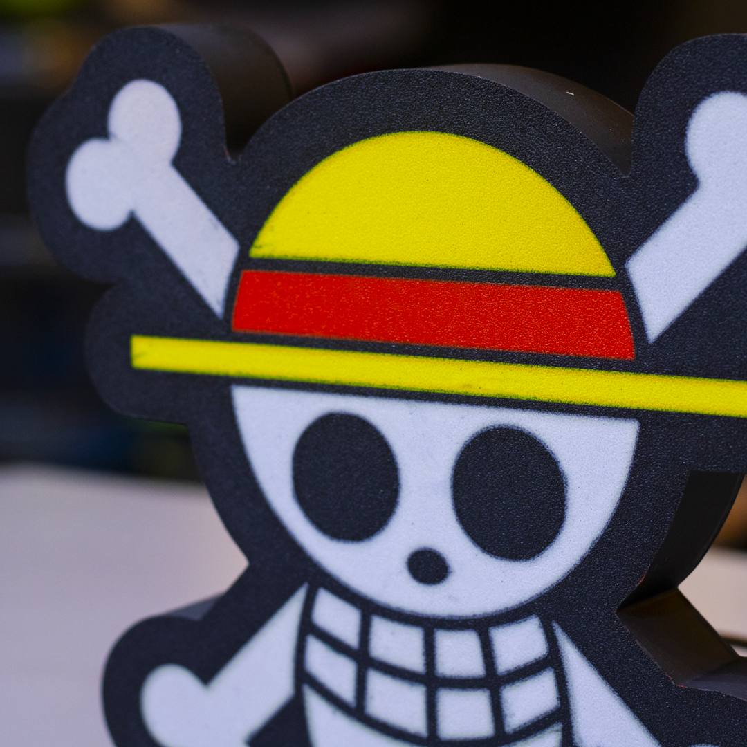 ¡El emblema que lidera al Sombrero de Paja! Esta lámpara impresa en 3D representa el Jolly Roger de Luffy, con su clásica calavera sonriente y el sombrero de paja más famoso del Grand Line. Un símbolo de libertad, aventura y lealtad que ahora ilumina tu espacio con alma pirata.