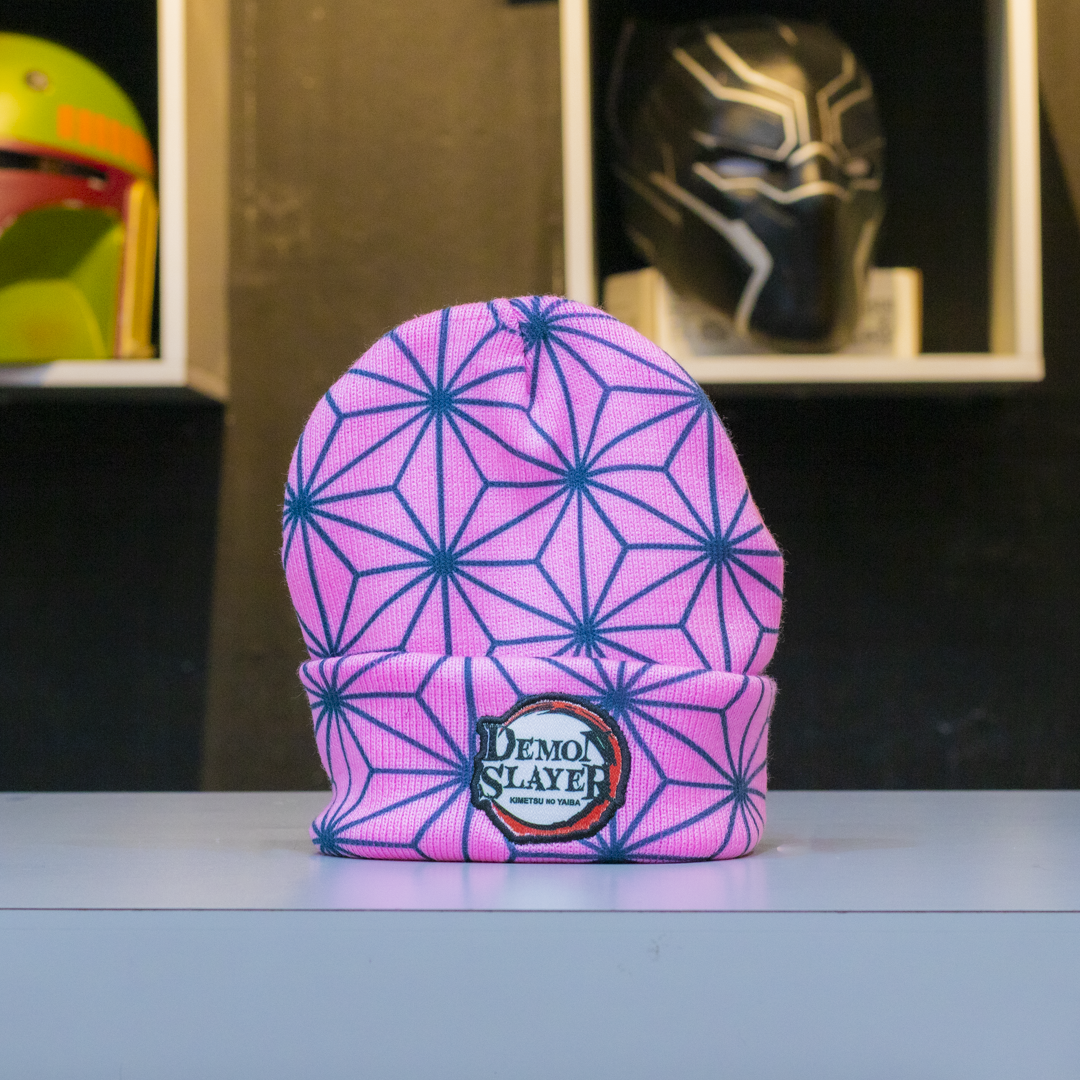 Este gorro de Nezuko Kamado está inspirado en la querida protagonista de Kimetsu no Yaiba. Su diseño combina detalles rosados y el característico bambú que lleva en la boca, transmitiendo su dulzura y fuerza interior. Ideal para fans del anime que buscan un estilo kawaii con personalidad.