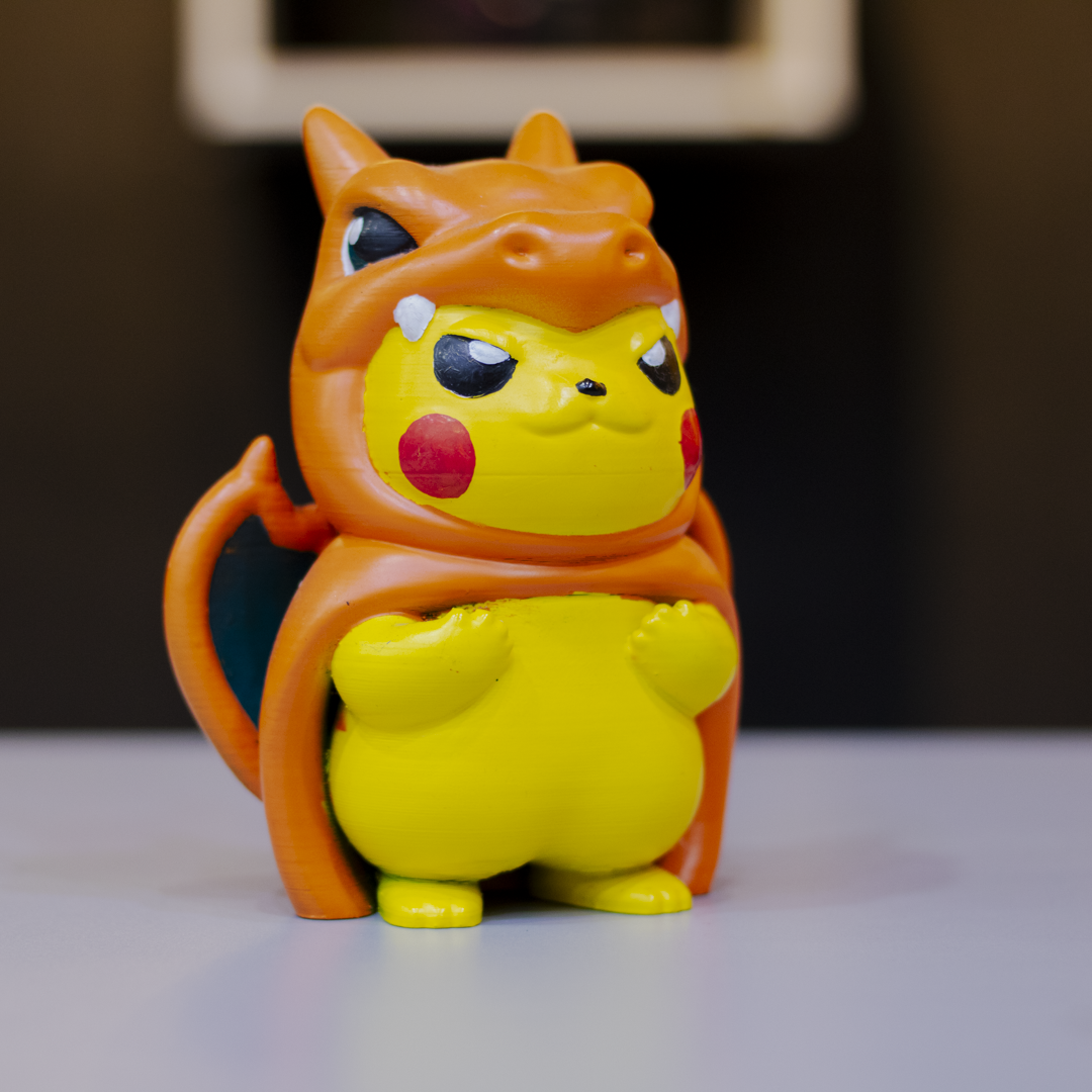 Este Pikachu con cosplay de Charizard es la combinación perfecta de ternura y poder, con un diseño detallado que lo hace ver listo para la batalla… o para robarse todas las miradas en tu colección.