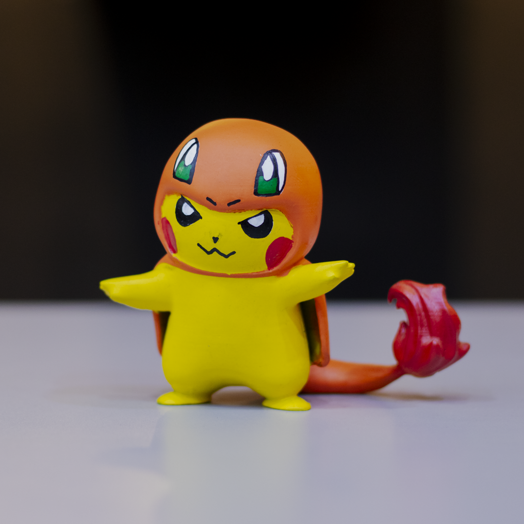 Este Pikachu con cosplay de Charmander es la mezcla perfecta de ternura y llamas, con un diseño detallado que hará que tu colección brille con más intensidad.