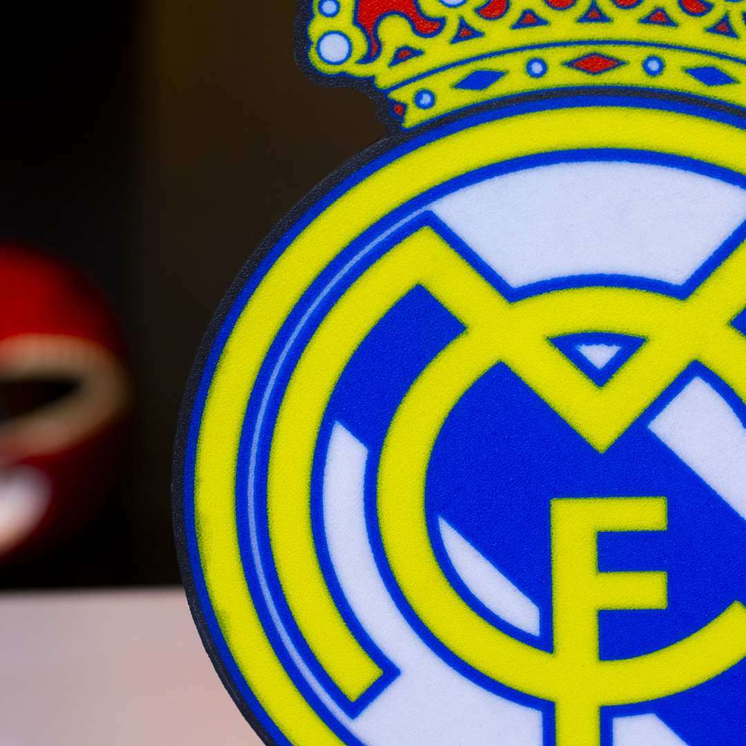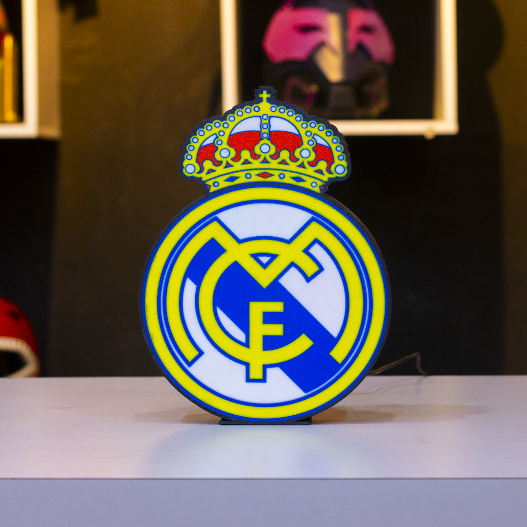 Con una luz LED cálida y un diseño fiel al emblema del club, esta pieza no solo decora: transmite historia, gloria y amor por el blanco.