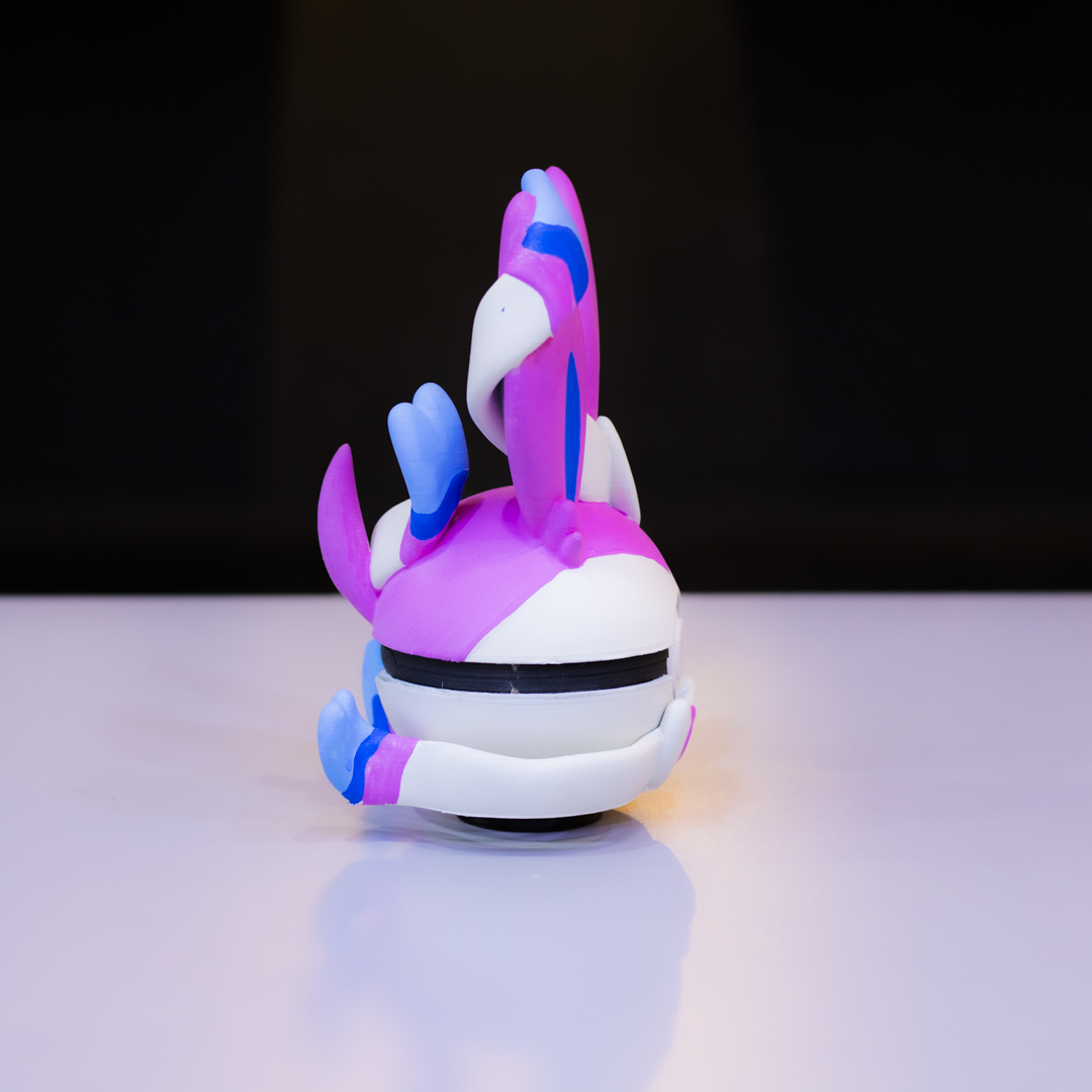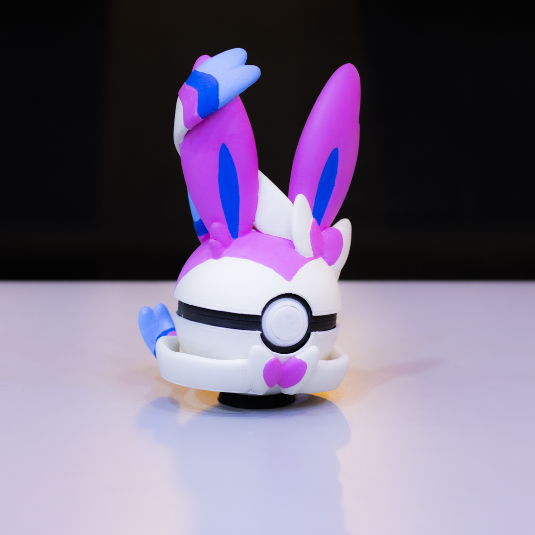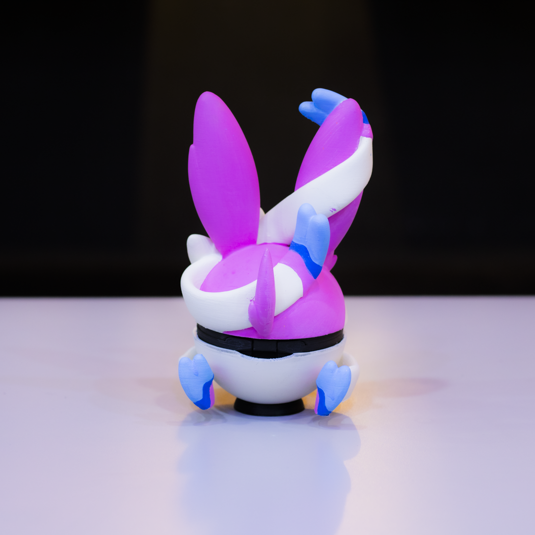 Impresa en 3D con acabado delicado y elegante, es ideal para vitrinas kawaii, colecciones de Eeveelutions o para quien siempre soñó con tener a Sylveon a su lado.