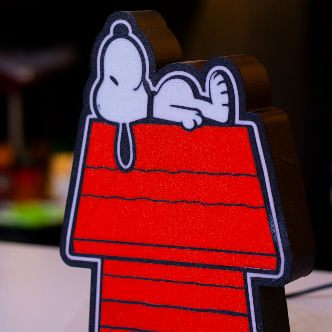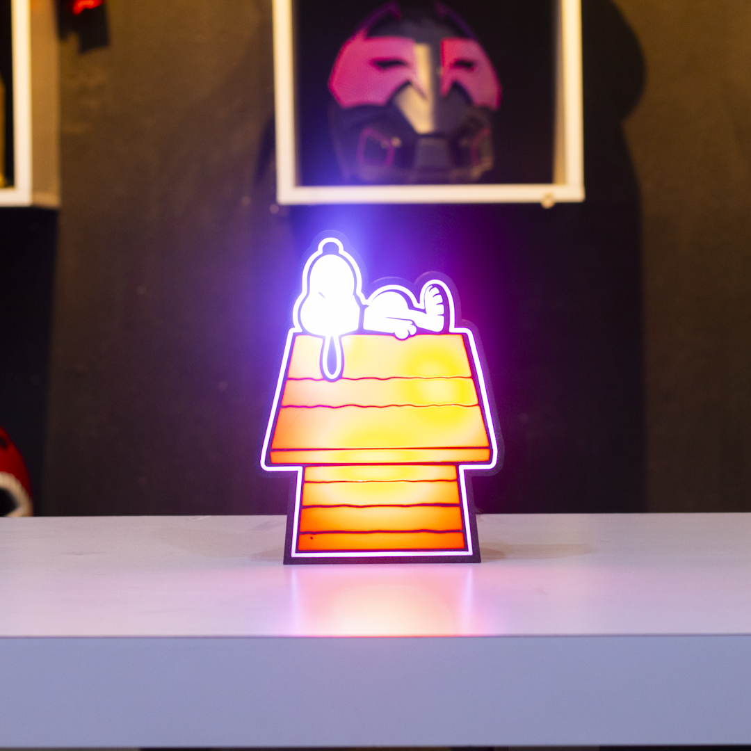 Paz, nostalgia y estilo en una sola pieza. Esta lámpara impresa en 3D recrea la escena más icónica de Snoopy acostado en el techo de su casita, mirando al cielo como solo él sabe hacerlo. Perfecta para iluminar tus noches con calma, ternura y un toque clásico que nunca pasa de moda.