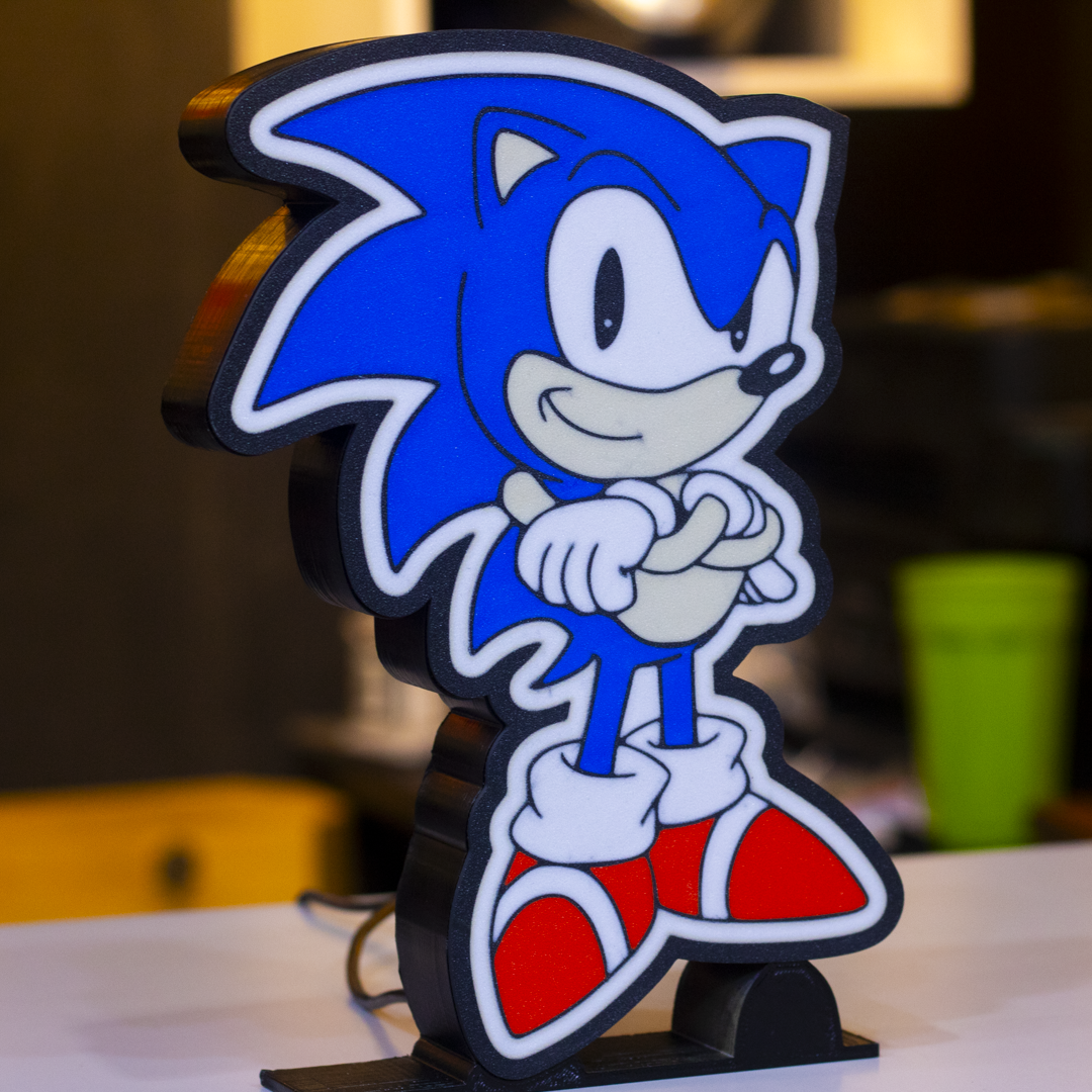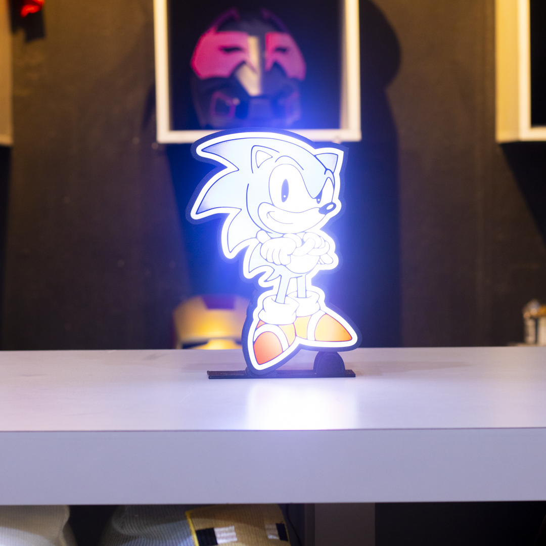 ¡Luz encendida… y a toda velocidad! Esta lámpara de Sonic, impresa en 3D, captura la actitud audaz y veloz del erizo más famoso del mundo.