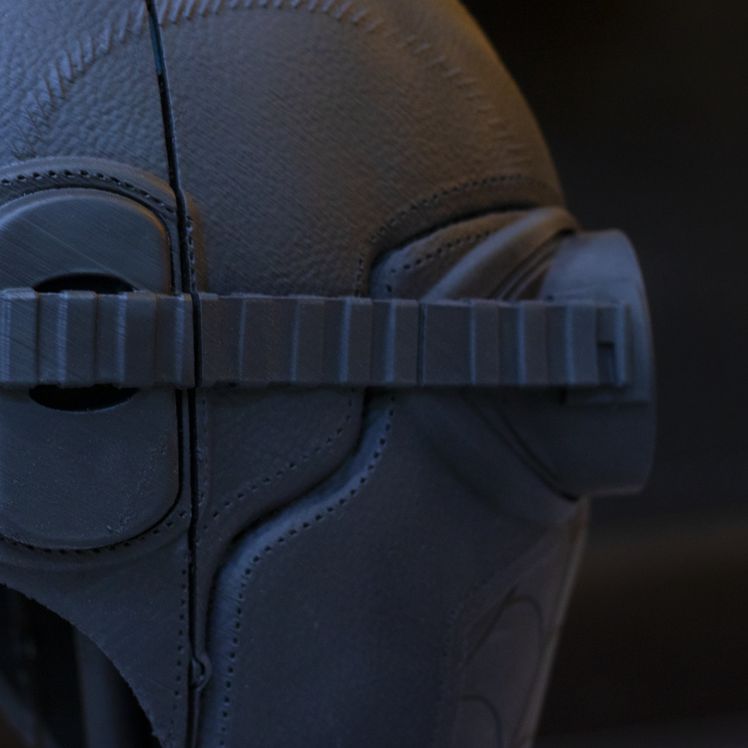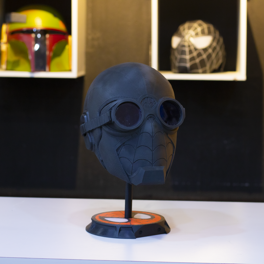 Este casco inspirado en Spider-Man Noir, del universo de Into the Spider-Verse, trae el estilo clásico de los años 30 en una versión impresa en 3D, sin sombrero, pero con toda la actitud sombría que lo caracteriza.