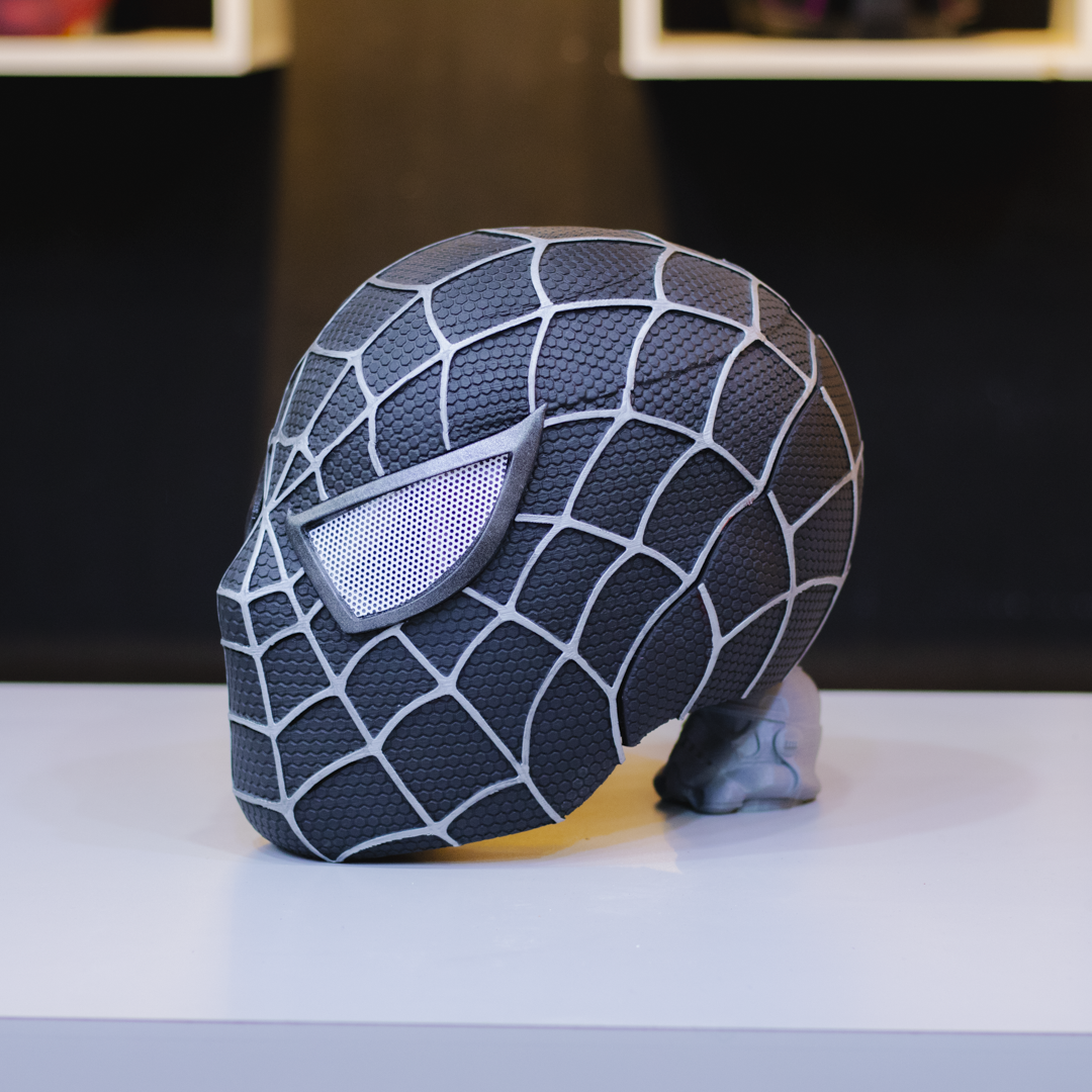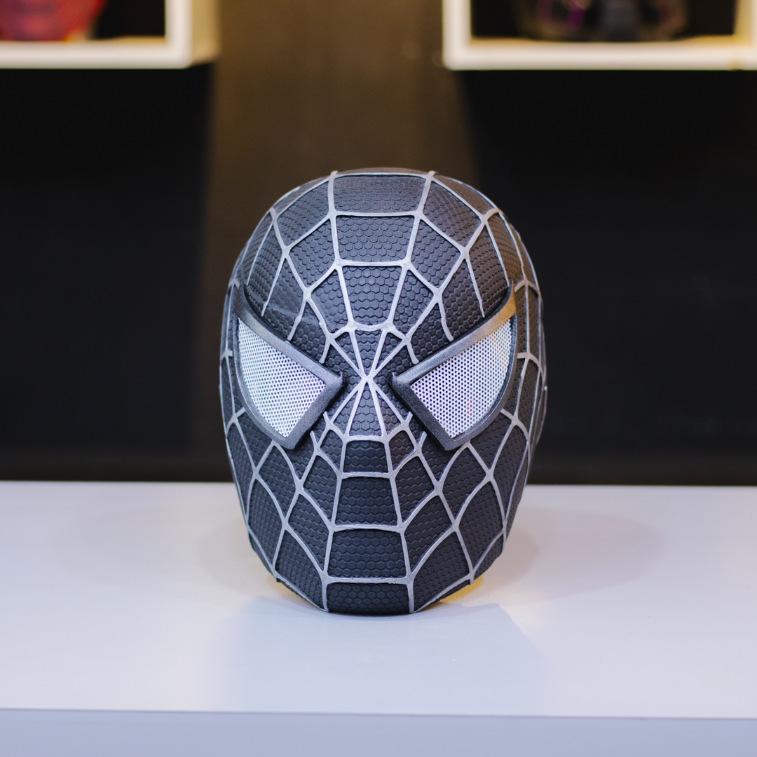 Pero tranquilo, ahora puedes redimirte con este casco de Spider-Man en su versión negra, inspirado en el icónico simbionte que nos dio a un Parker demasiado confiado.