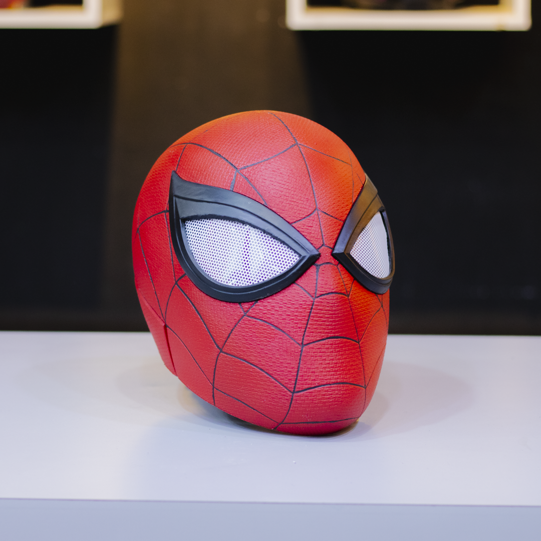 Este casco de Spider-Man, inspirado en la versión de Tom Holland, es una réplica impecable en impresión 3D que captura cada detalle del traje del arácnido más joven del UCM.