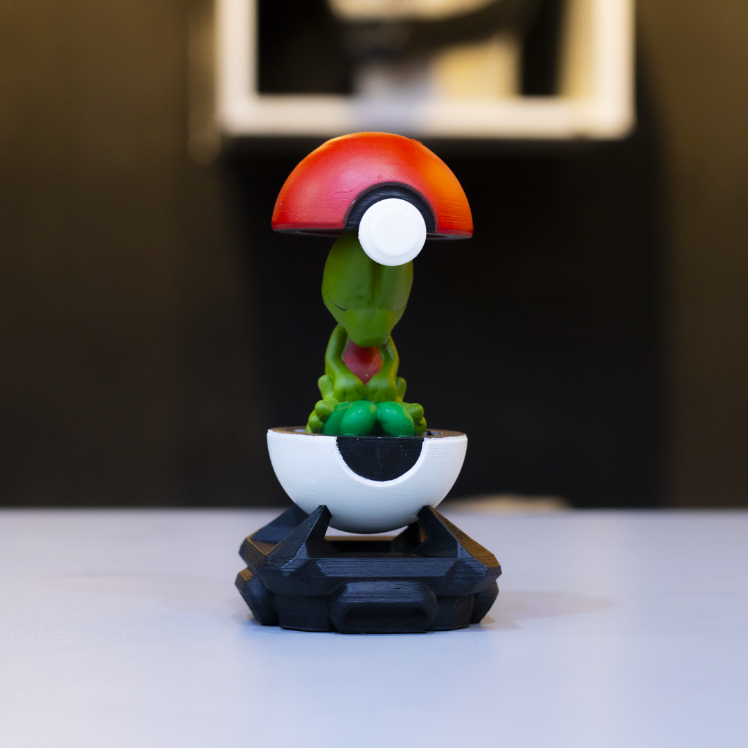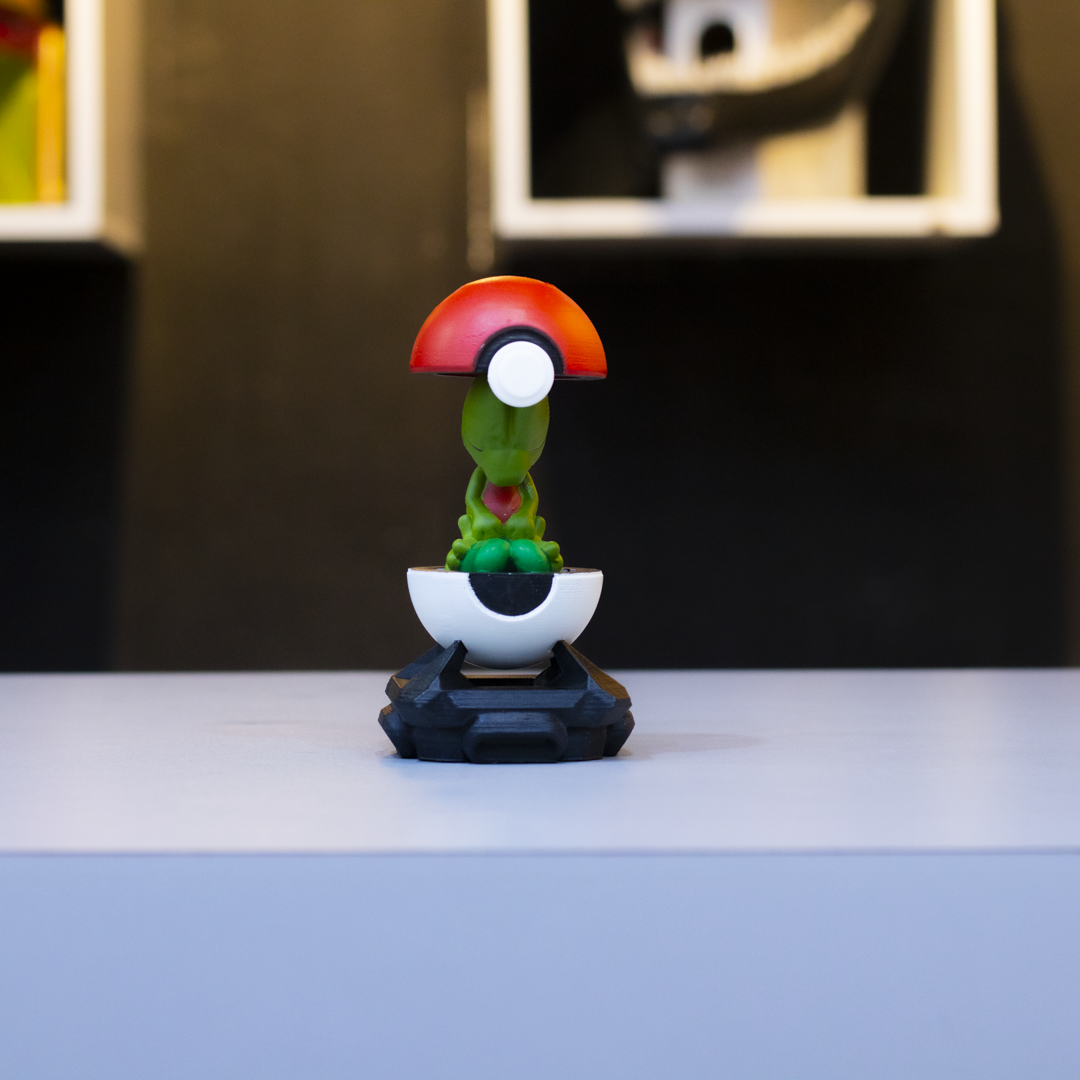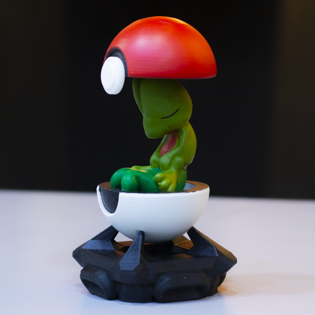 Este Treecko impreso en 3D dentro de una cápsula tipo Pokébola te muestra al Pokémon tipo planta en su estado más adorable: ¡dormido como si no hubiera gimnasio mañana! Perfecto para coleccionistas y fans que aman los detalles únicos.