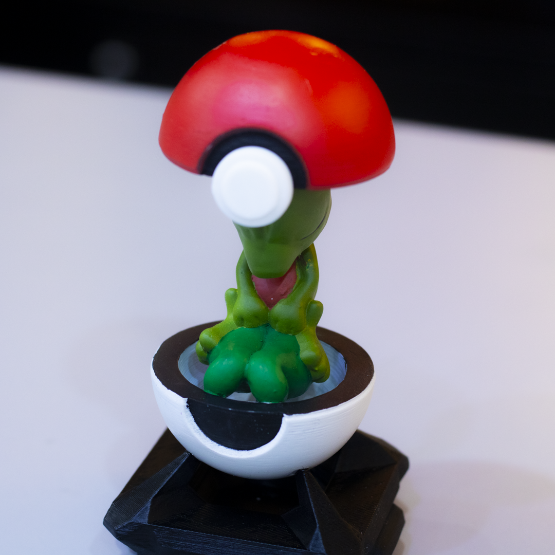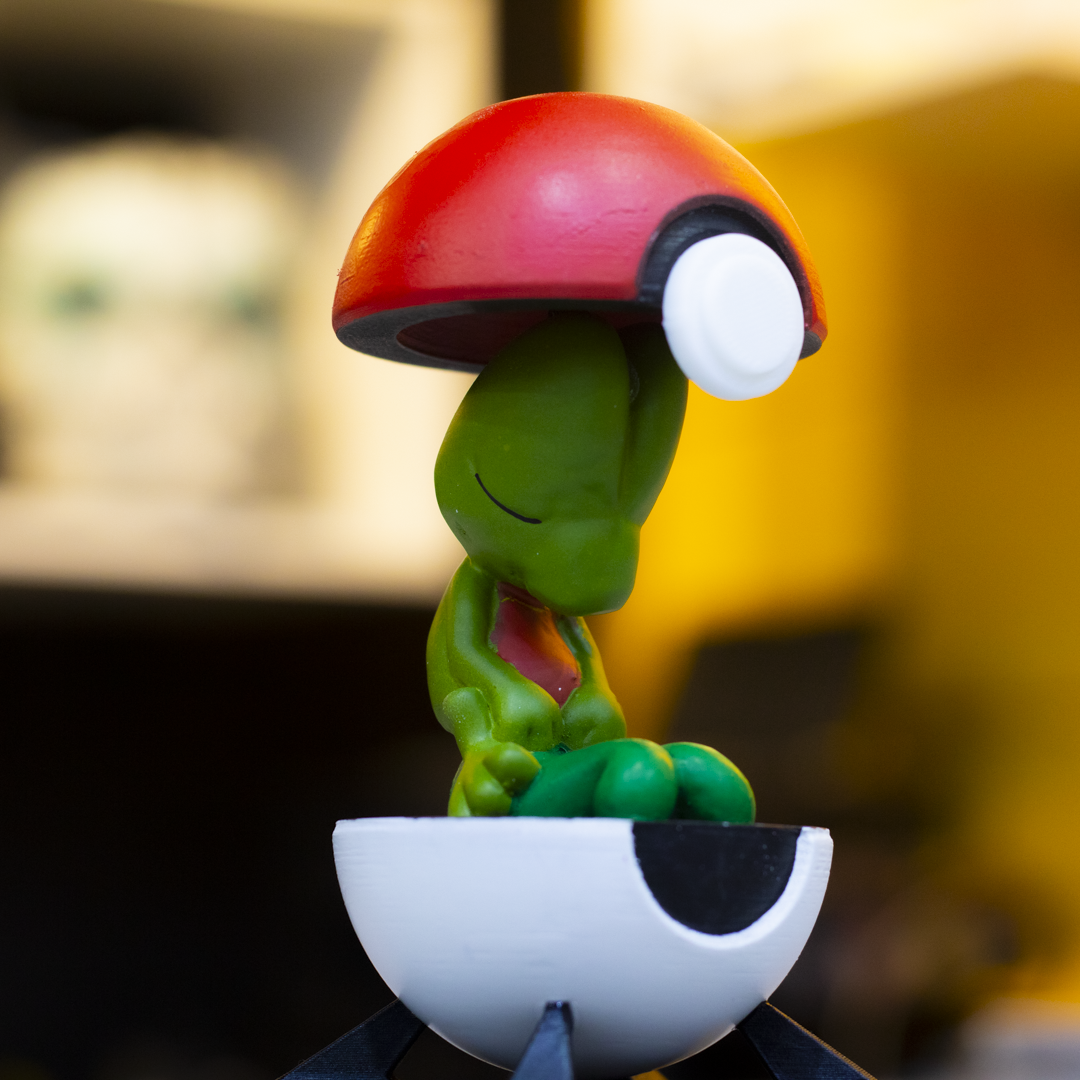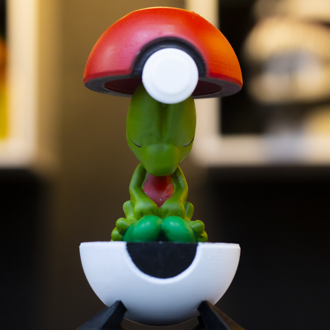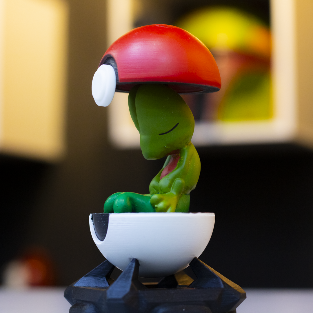 Este Treecko impreso en 3D dentro de una cápsula tipo Pokébola te muestra al Pokémon tipo planta en su estado más adorable: ¡dormido como si no hubiera gimnasio mañana! Perfecto para coleccionistas y fans que aman los detalles únicos.
