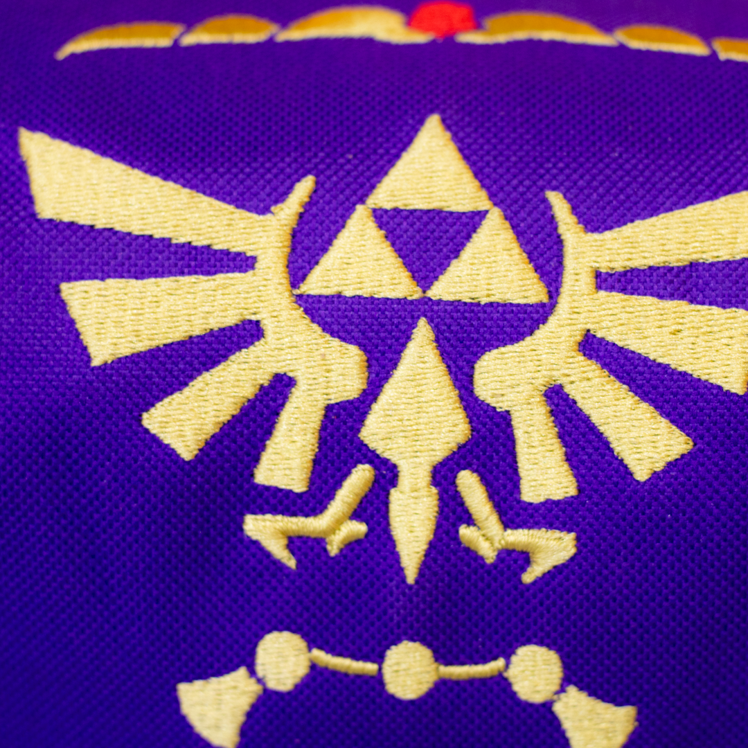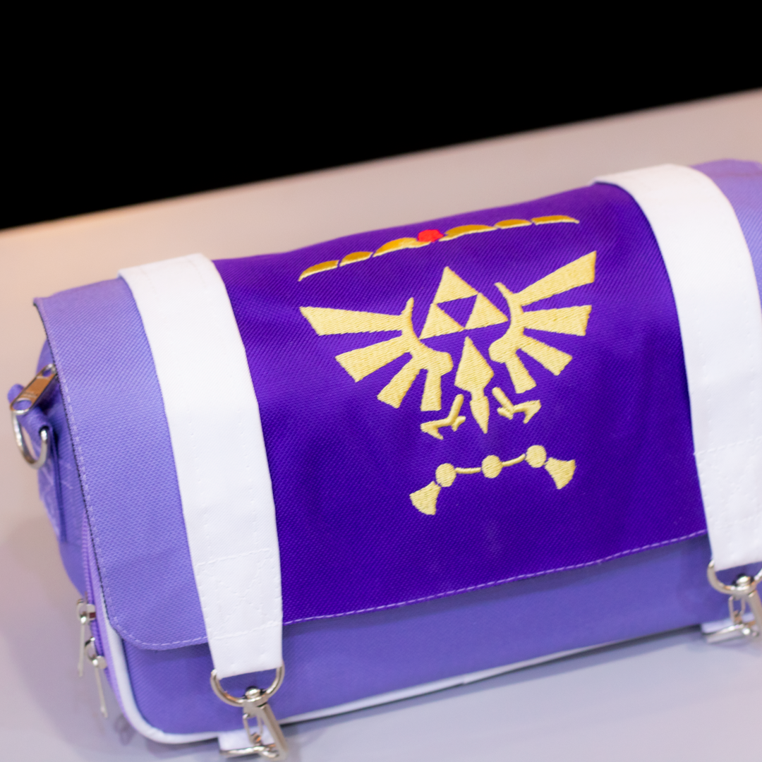Inspirado en la magia de Hyrule, este porta Switch color lila lleva al frente el símbolo de la Trifuerza coronada, combinando estilo y poder en una sola pieza.
